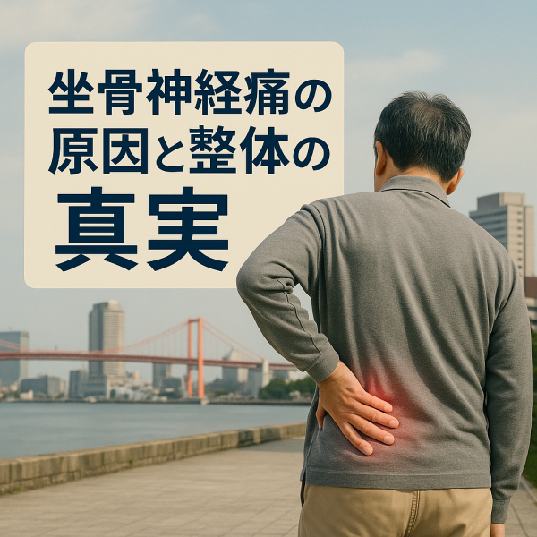 坐骨神経痛とは、腰からお尻、太ももの後ろ、ふくらはぎ、足先にかけての痛みやしびれを伴う症状を指します。これは坐骨神経が何らかの原因で圧迫されたり刺激されたりすることで起こります。 坐骨神経の役割と構造 坐骨神経は人体で最も太く長い神経で、腰の骨(腰椎)から骨盤を通り、足先まで伸びています。足の感覚や筋肉を動かす役割を持つため、この神経が圧迫されると痛みやしびれだけでなく、筋力低下や動きづらさを感じることもあります。 主な症状 お尻や太ももの後ろに走る鋭い痛み 足先のしびれや感覚鈍麻 長時間座ったり立ったりすると悪化 歩行時の違和感や痛み 坐骨神経痛の主な原因 腰椎椎間板ヘルニア 椎間板が飛び出し、神経を圧迫する状態。特に若い世代に多い。 脊柱管狭窄症 脊柱の神経が通る管が狭くなり神経を圧迫。中高年に多い。 筋肉の過緊張(特に梨状筋症候群) お尻の深い筋肉「梨状筋」が硬くなり、神経を締め付けることがある。 骨盤や腰椎の歪み・動きの悪さ 骨格のバランスが崩れることで、神経に負担がかかる。 内臓や循環の問題からくる二次的な神経症状(慢性化の場合)
